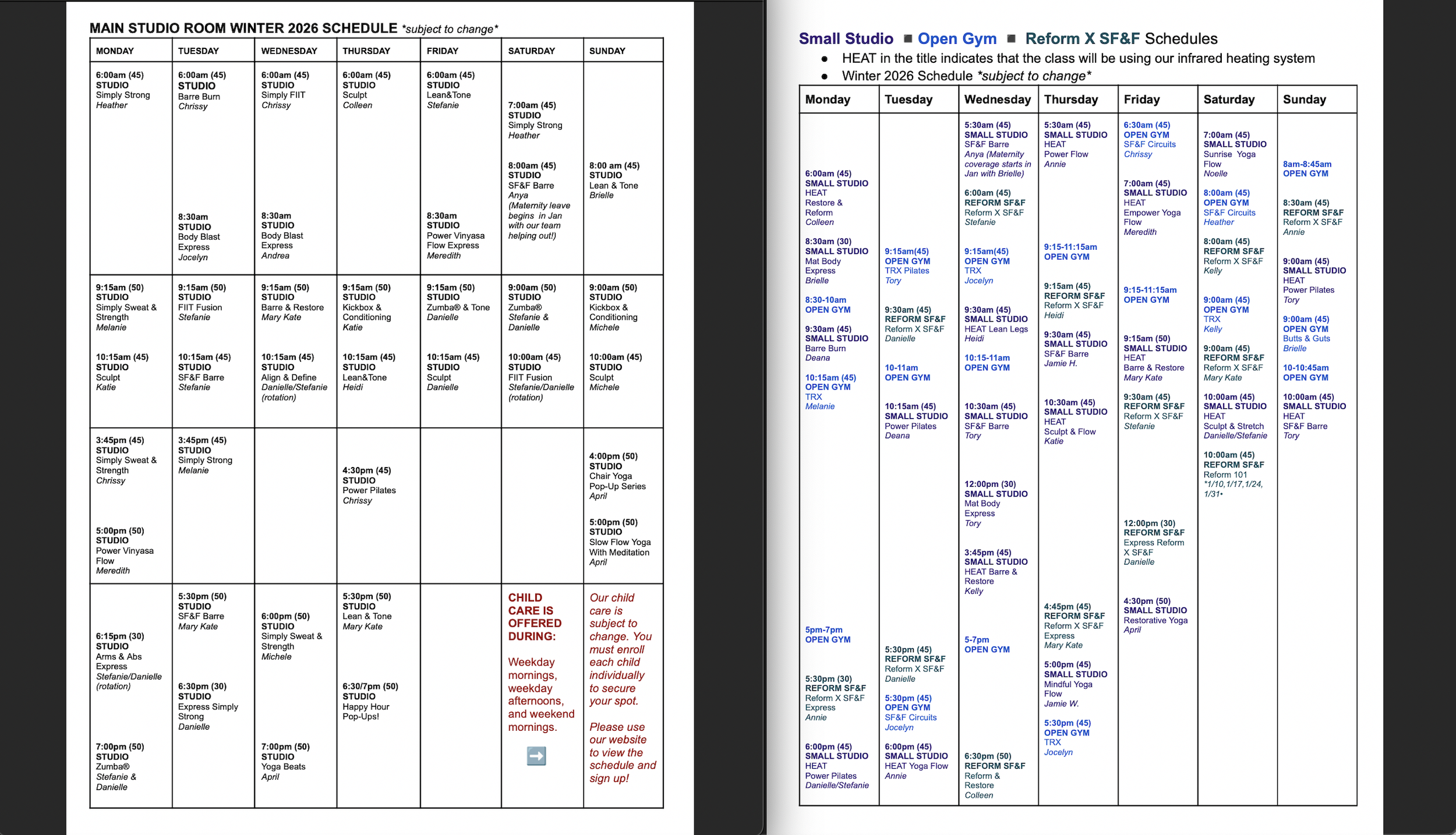Class schedule